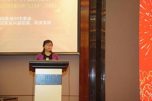 闵云主委发表题为《不忘初心 奋斗不息》讲话,她对市委会2017年取得的履职成果表示肯定。她指出,2017年湖州民革各项事业稳步推进,得到民革上级组织和中共市委、市委统战部的高度肯定,取得新的成绩。展望2018年,是中共中央发布“五一”口号70周年、民革成立70周年,市委会要围绕省委会提出的“五大民革”,开展“五大行动”。一是围绕“同心民革”建设,大力开展示范行动。2018年要把深入学习习近平新时代中国特色社会主义思想和十九大精神作为当前首要的学习任务,要在民革上下开展学习示范行动;二是围绕“智慧民革”建设,大力开展攻坚行动。要围绕市委市政府的各项中心工作,发挥民革特色领域优势,抓住中心、突出重点、加强调研,提出高质量的金点子,写出高水平的调研报告,在攻坚行动上下功夫、有突破;三是围绕“博爱民革”建设,大力开展品牌行动。2018年要策划一些有影响力的,结合湖州民革实际和特色的社会服务活动,形成自己的品牌;四是围绕“活力民革”建设,大力开展提升行动。在新党员的发展中,要把好入口关,在履职过程中要讲团结,只有团结一心,民革才会有活力、有成果;五是围绕“网上民革”建设,大力开展护航行动。要采取信息化的方式,使互联网的发展成果服务于民革的自身建设、各项履职工作和基层广大党员的个性化要求,同时要提高网络的安全意识,防范网络的风险,要时刻维护好、宣传好民革的好形象,为民革的履职护航助力。